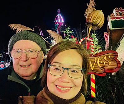 Big kids Mike & Myra were entertained by the Christmas lights trail at Lilidorei